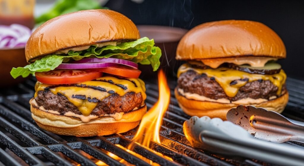 Place the patties directly on the hot grill grates. For medium-rare burgers, cook for about 3-4 minutes per side. For medium, aim for 4-5 minutes per side. For well-done, cook for 5-6 minutes per side. Resist the urge to press down on the burgers with your spatula — this squeezes out all those delicious juices, leading to dry patties. Flip only once! This is a common mistake that data shows reduces juiciness by up to 15%. Use an instant-read thermometer to check internal temperatures: 130-135°F (54-57°C) for medium-rare, 135-140°F (57-60°C) for medium.