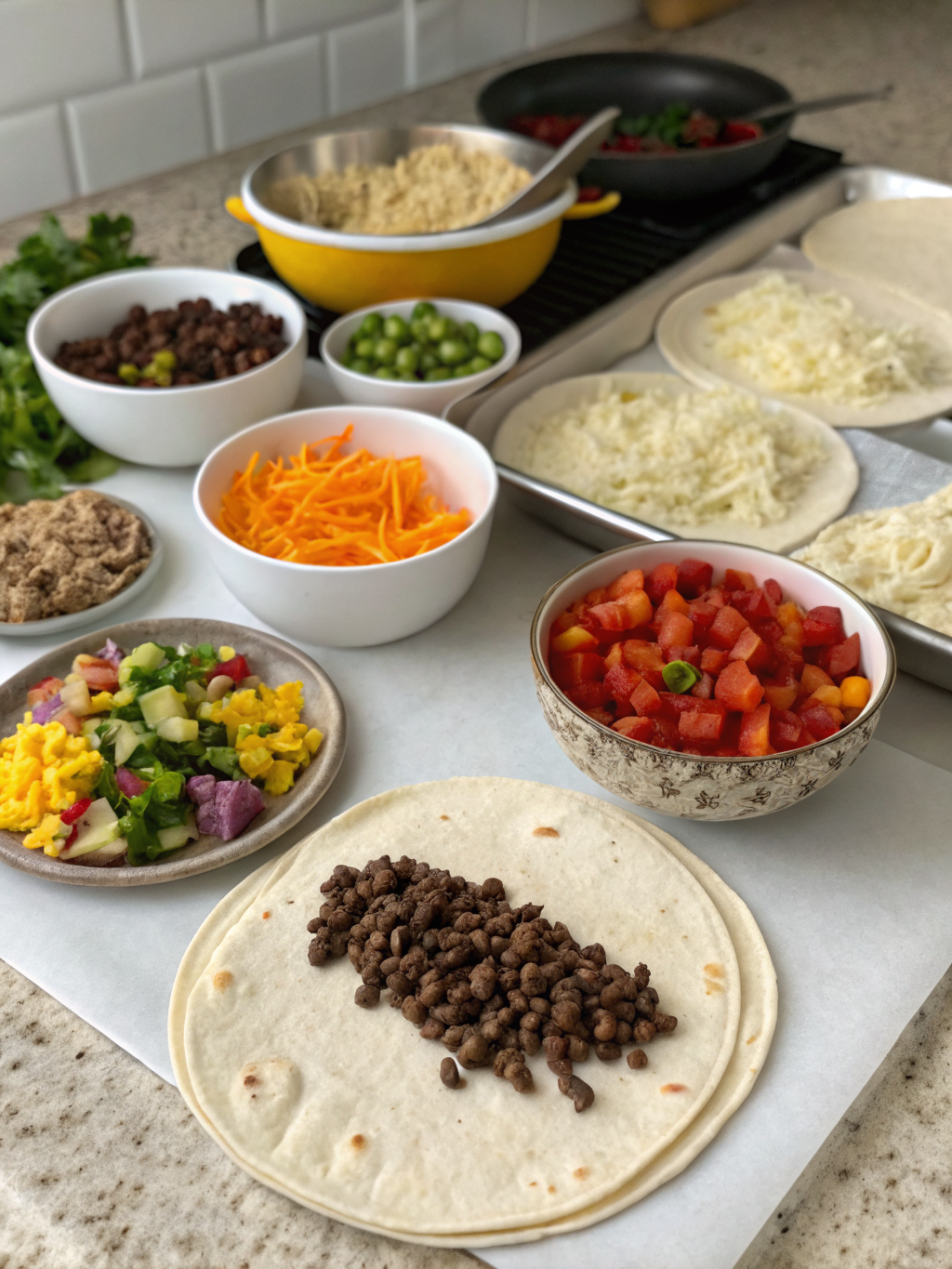 While the filling simmers, prepare your remaining ingredients. Cook your rice according to package directions. Shred your cheese, chop your cilantro, and warm your tortillas. For best results, warm tortillas individually in a dry skillet over medium heat for 15-20 seconds per side, or microwave them briefly wrapped in a damp paper towel. This makes them pliable and less likely to tear when rolled.